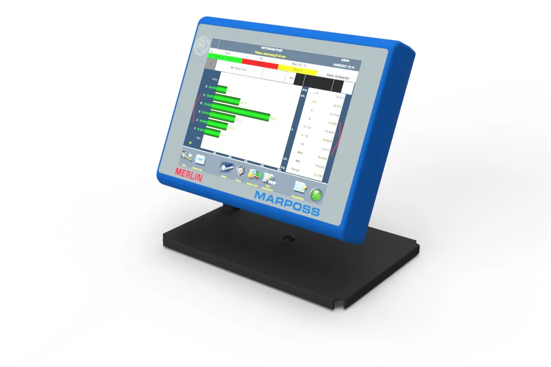 Merlin dirancang khusus untuk operasi manual sederhana dan mendukung semua perangkat pengukuran Marposs utama, serta beberapa perangkat pihak ketiga, dan dilengkapi opsi koneksi RS232, USB, Ethernet, dan Bluetooth.